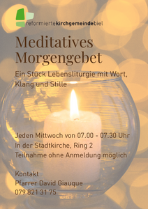 Meditatives Morgengebet Ein Stück Lebensliturgie mit Wort, Klang und Stille Jeden Mittwoch von 07.00 - 07.30 Uhr In der Stadtkirche, Ring 2 Teilnahme ohne Anmeldung möglich Kontakt Pfarrer David…